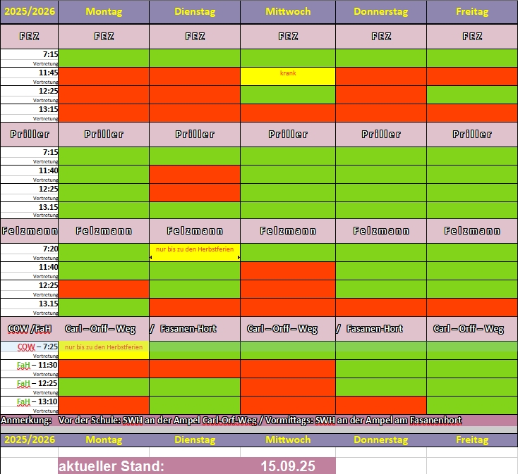 Aktuell arbeiten wir an dem Einsatzplan für das kommende Schuljahr 2025/2026 und suchen nach wie vor Unterstützung – insbesondere für die Vormittagsschichten.